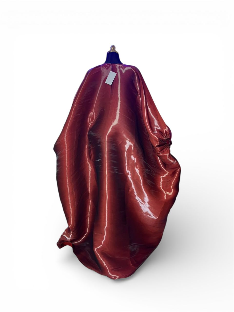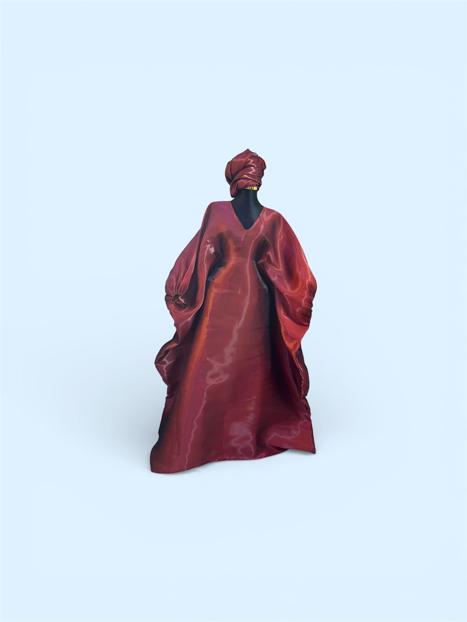 Confectionné dans un organdy mercure haut de gamme, ce boubou se distingue par son tissu légèrement transparent et subtilement irisé, qui capte la lumière avec finesse. Sa coupe ample et fluide offre un tombé majestueux, tout en garantissant un confort absolu.