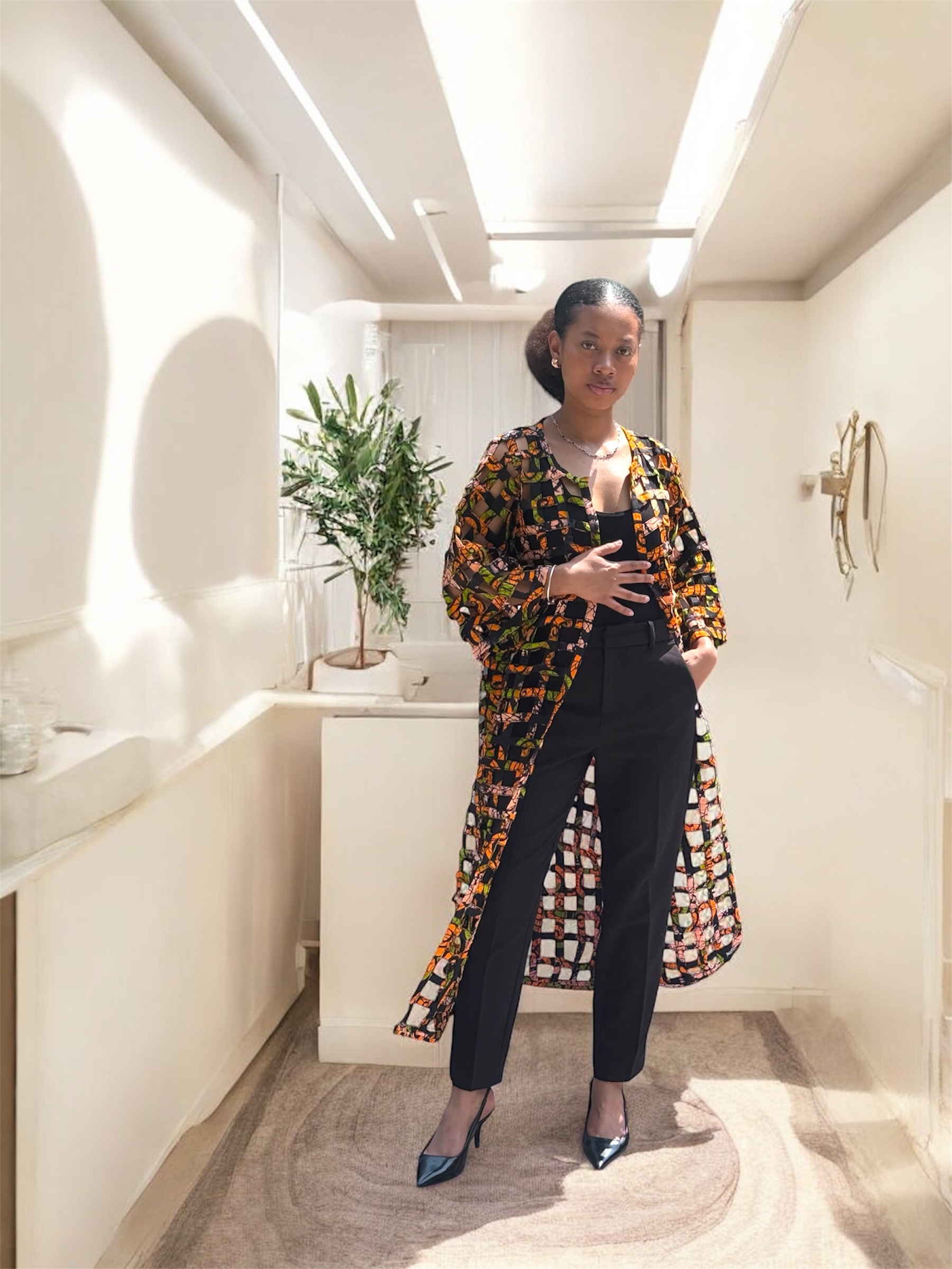 Adopte un look affirmé avec ce kimono 3/4 en Wax, pensé pour sublimer toutes les silhouettes. Porté ouvert ou ceinturé, il apporte une touche ethnique et élégante à toutes tes tenues – casual ou habillées.