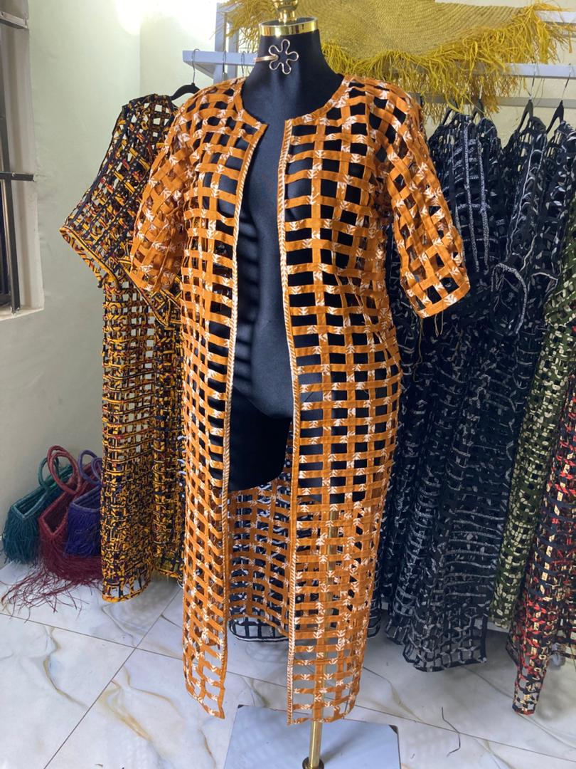 Ce kimono long en pagne Wax est la pièce forte qu’il te faut pour rehausser instantanément n’importe quelle tenue. Avec sa longueur d’environ 1m35, il allonge la silhouette et offre un tombé fluide et majestueux. Un véritable bijou textile à porter au quotidien ou lors de grandes occasions.