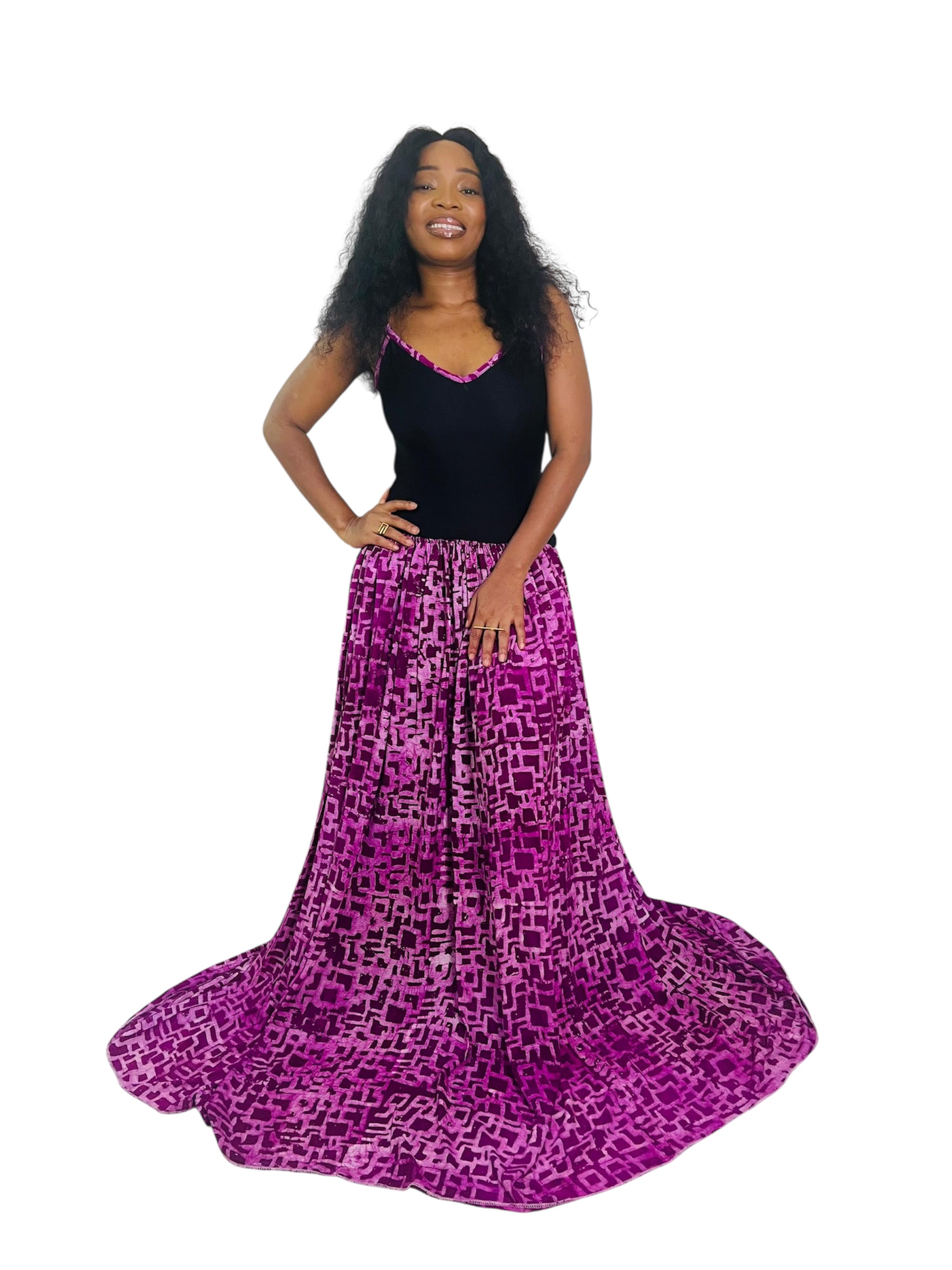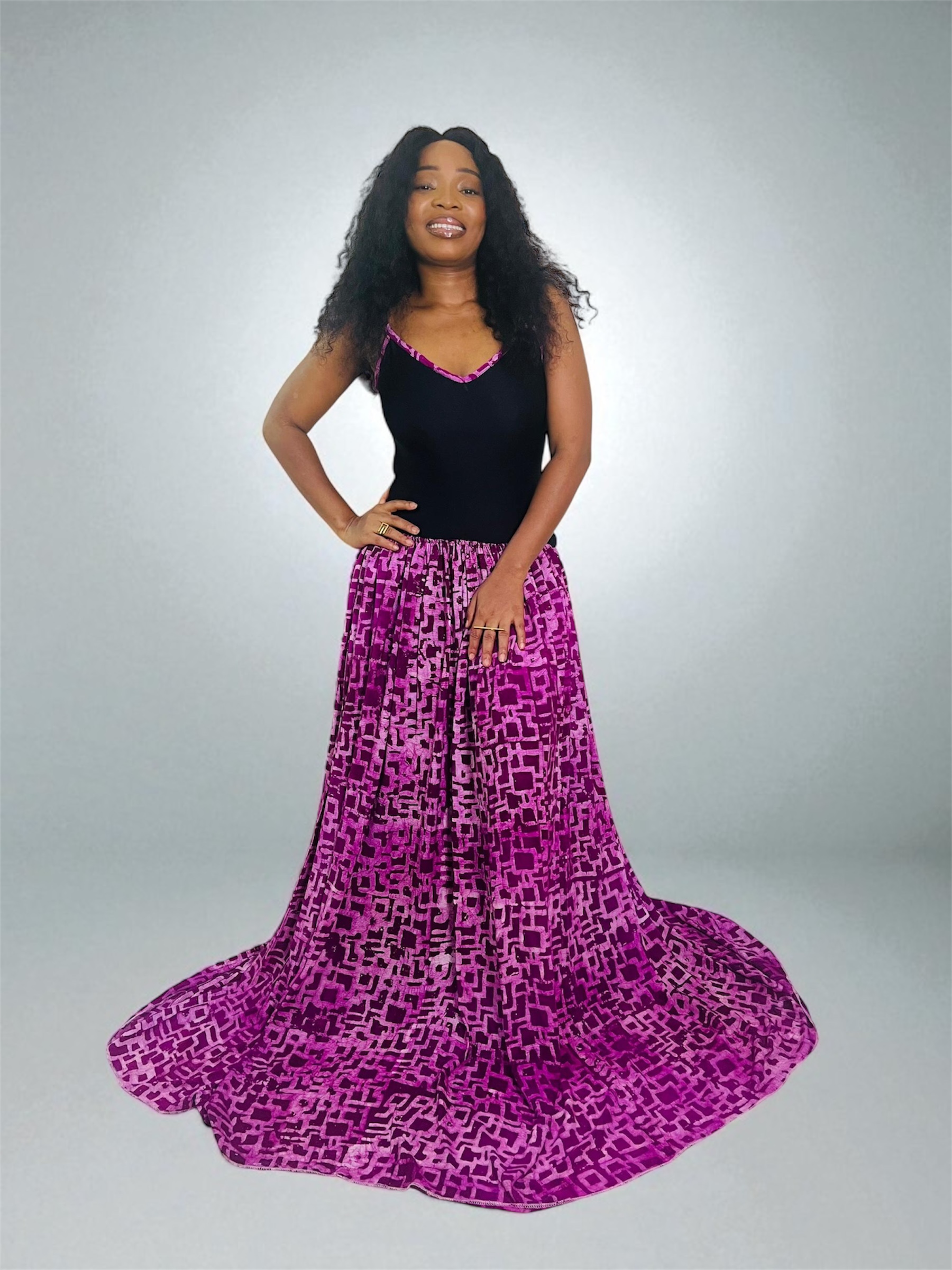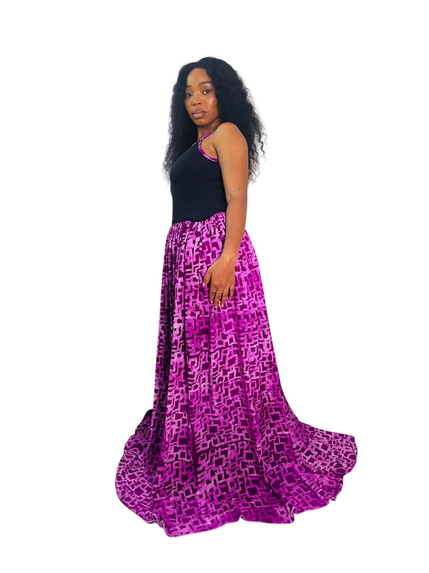 Découvrez la parfaite alliance du tissu adire artisanal et du stretch moderne dans cette robe longue à coupe ovale. Élégante et confortable, elle épouse délicatement les courbes tout en offrant une fluidité naturelle et un tombé raffiné.