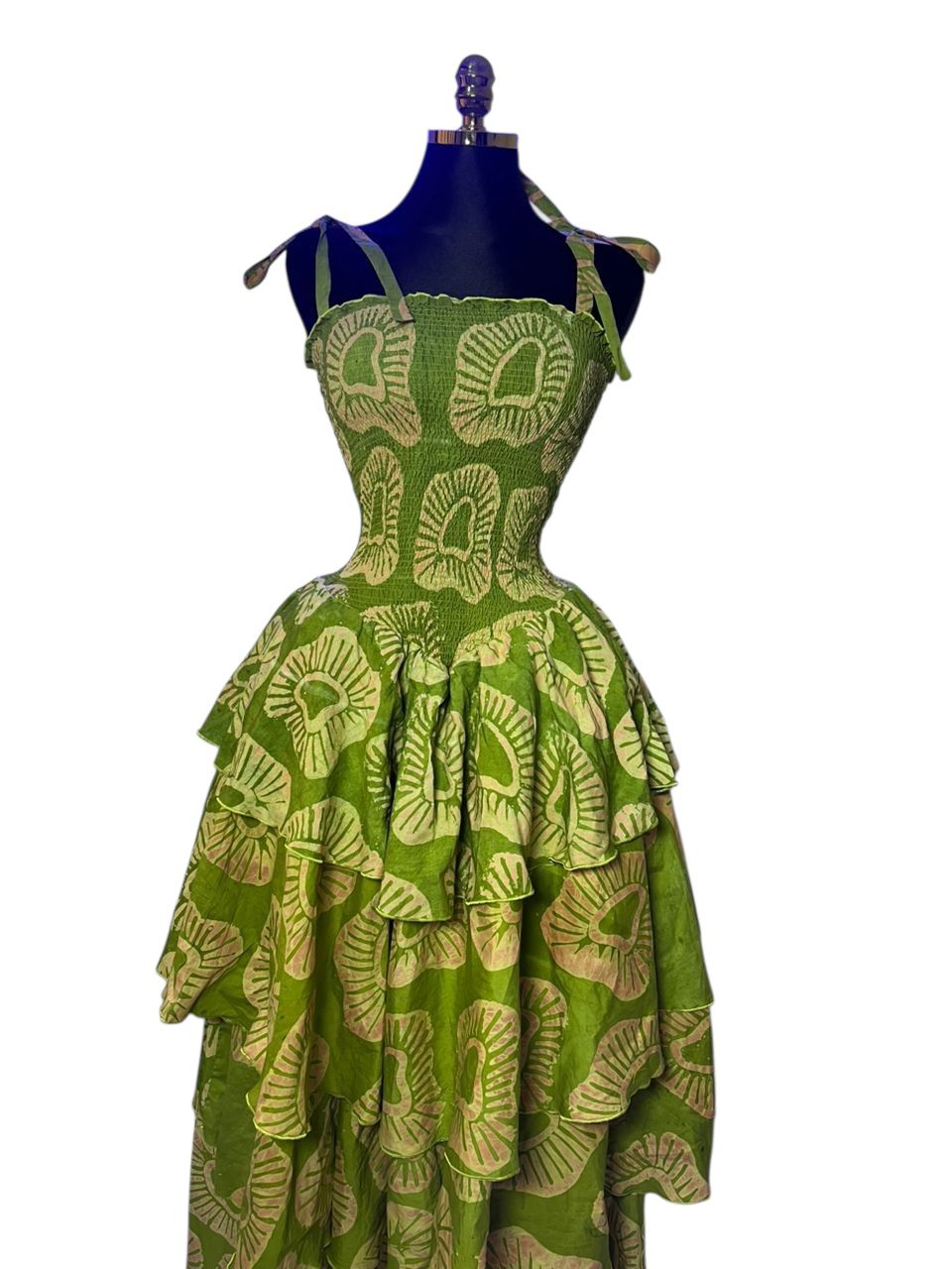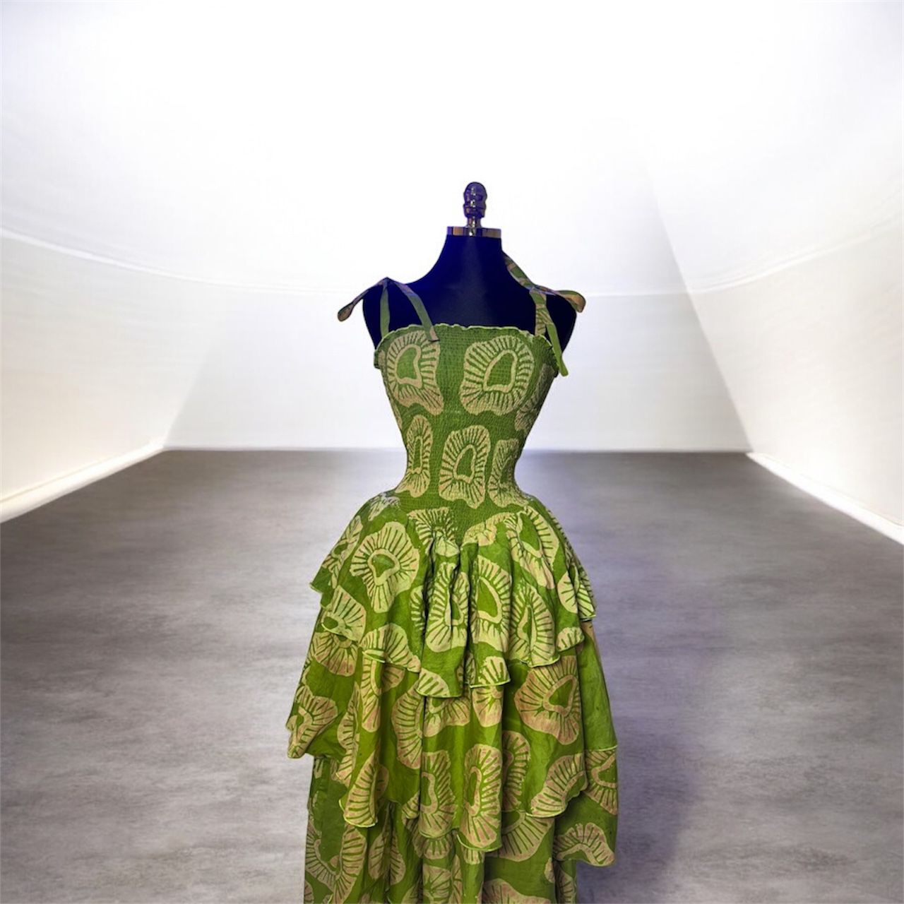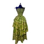 Robe Maxi « Émeraude » à Volants et Bustier Smocké – Motif Végétal