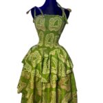 Volume & Mouvement : La jupe se déploie en une cascade de volants superposés (coupe à étages), créant un mouvement fluide et aérien à chaque pas.